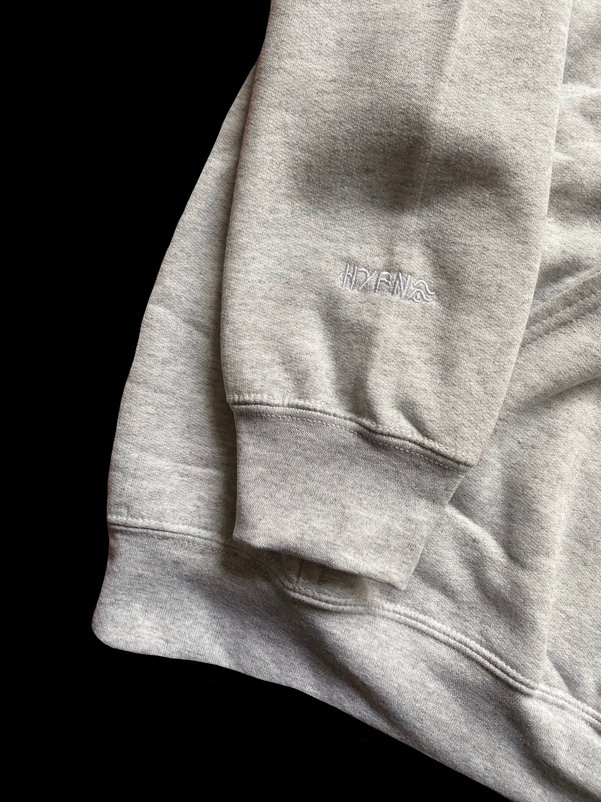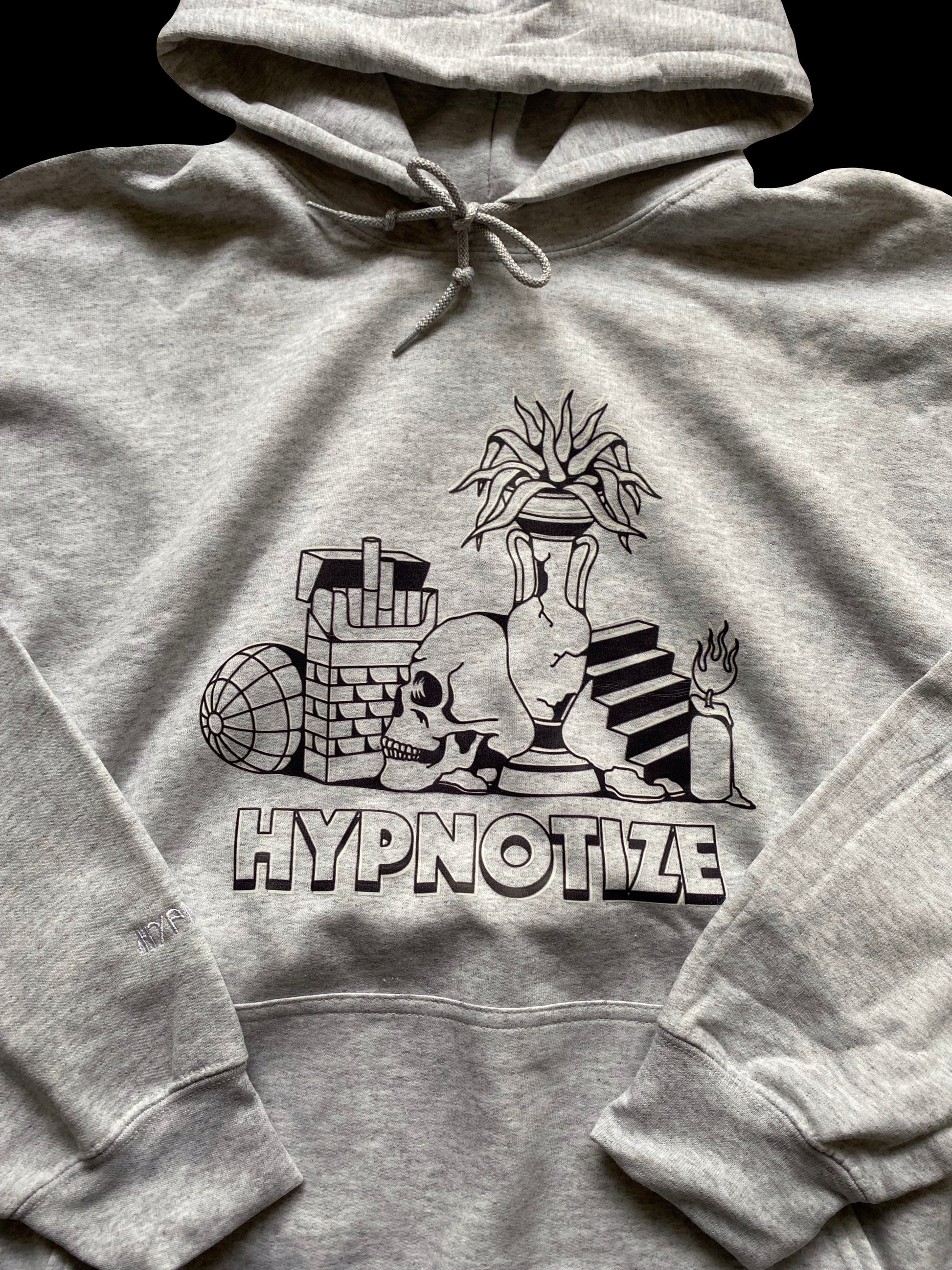 Der All Time Classic Hypno-Hoodie in Aschegrau mit Stick am Ärmel.